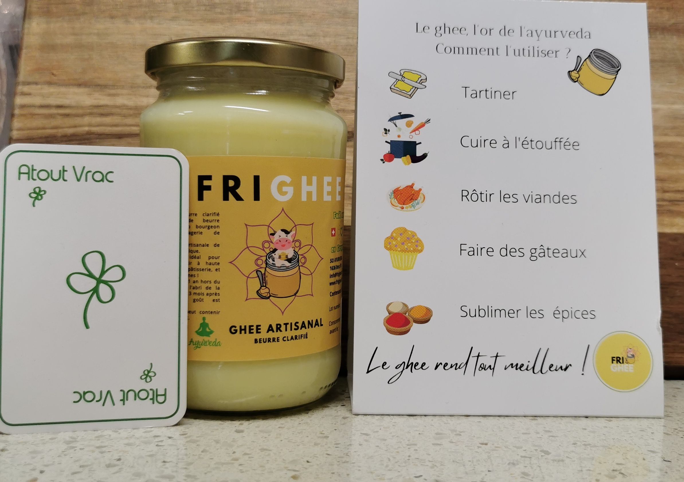 Venez déguster du ghee (beurre clarifié) fabriqué dans le canton avec du beurre fribourgeois! Apprenez à l'utiliser pour sublimer vos plats et connaître ses vertues. Traditionnellement utilisé en ayurvéda.