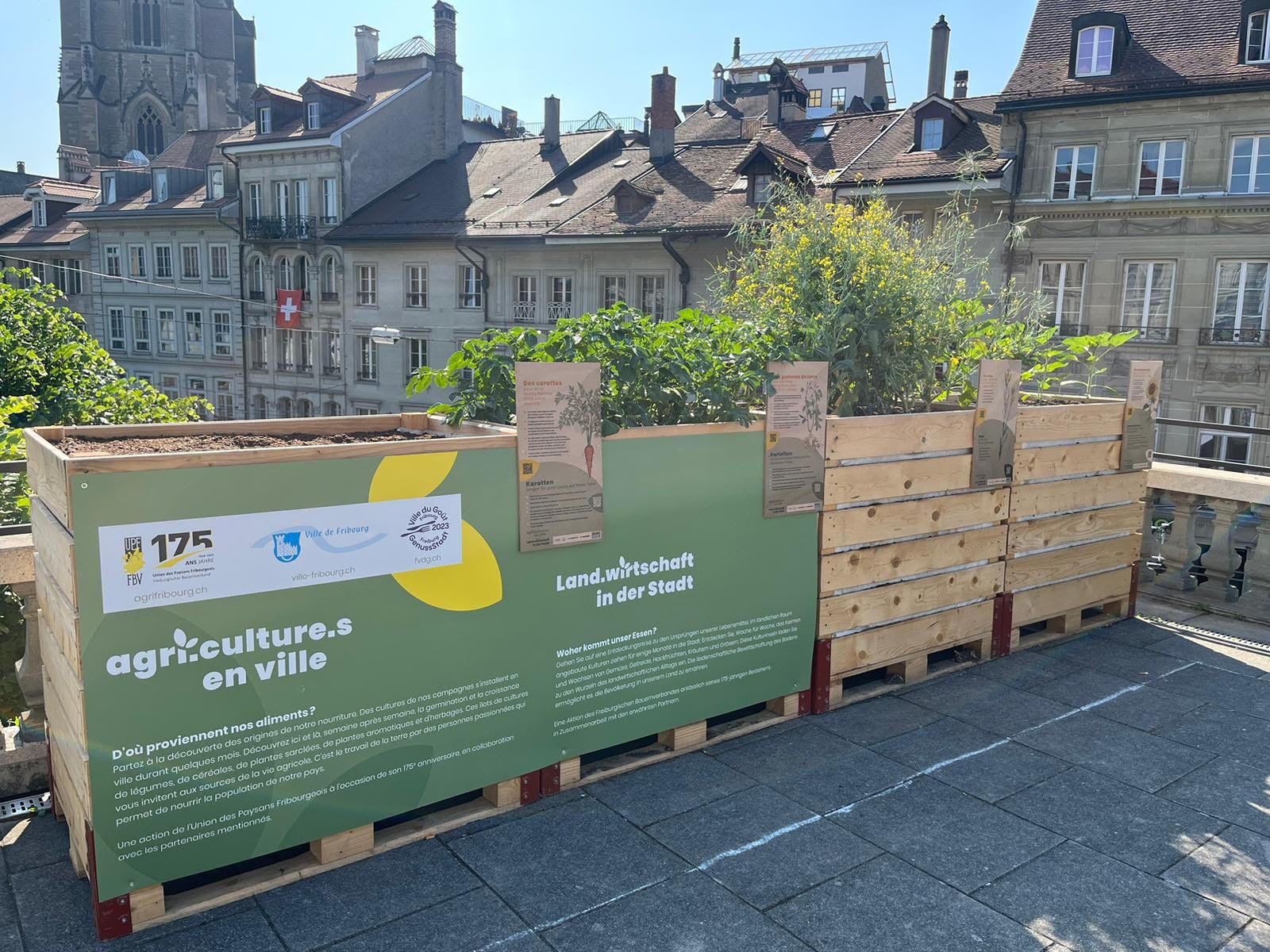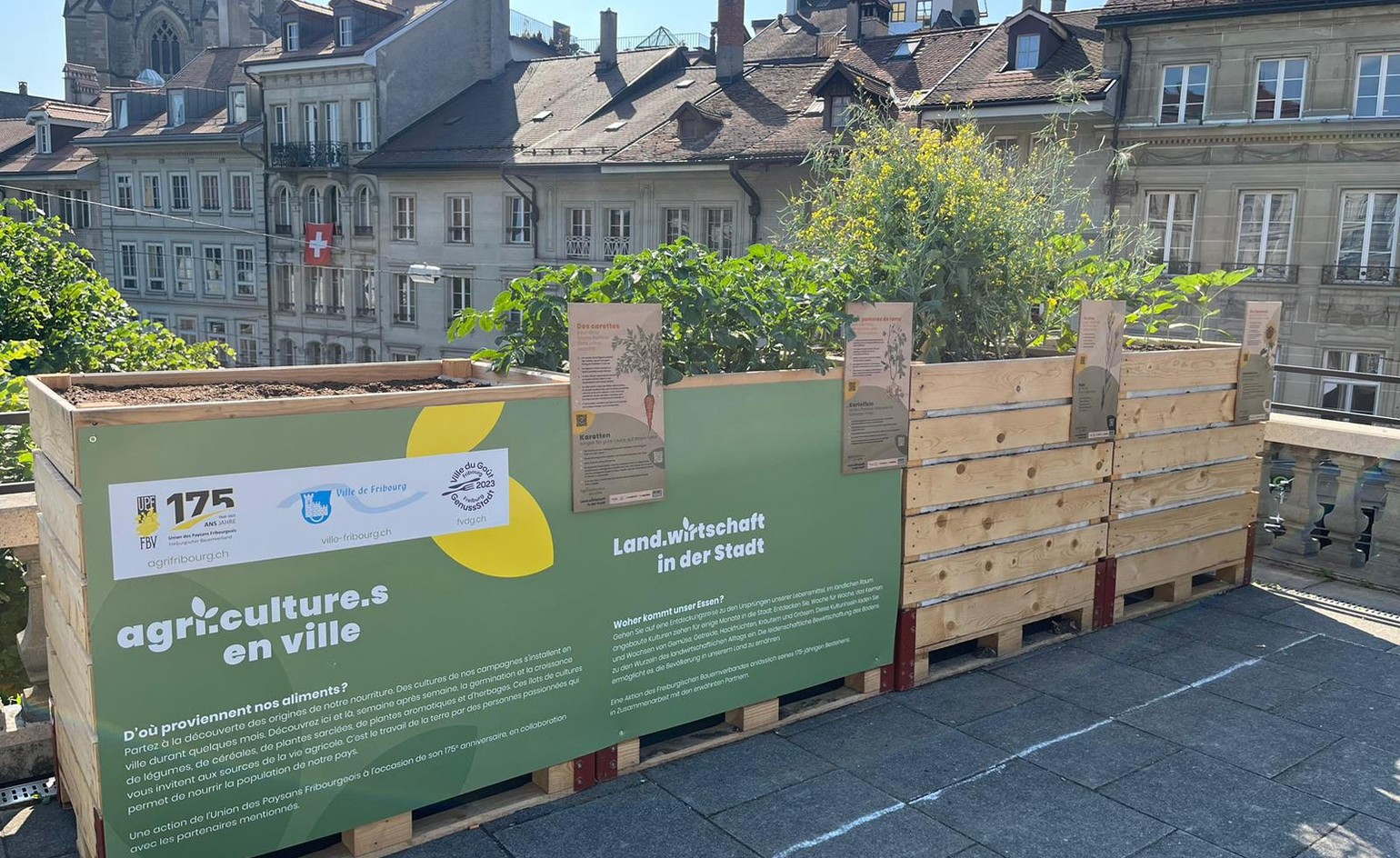 D’où proviennent nos aliments? Partez à la découverte des origines de notre nourriture. Symboliquement baptisée "agri.culture.s en ville.s", ce parcours offre une place de choix aux cultures de nos campagnes en les invitant à s’installer en ville durant quelques mois : de mai à novembre, différentes cultures s’épanouissent dans de grands bacs ici et là dans les principales villes de notre canton. Cette action permet de découvrir, semaine après semaine, la germination et la croissance de légumes, de céréales, de plantes sarclées, de plantes aromatiques et d’herbages. En ville de Fribourg d’abord, puis dans les différents chefs-lieux du canton, des îlots de cultures emmènent les visiteurs aux origines de la vie agricole et de sa production de nourriture, et fournissent de précieuses informations au moyen de QR codes. Une production locale et respectueuse de l’environnement. Retrouvez le plan de tous les espaces dédiés aux Jardins en Ville sur https://www.agrifribourg.ch/fr/actualites/175-ans Participez au concours « agri.culture.s en ville » ! Scannez le QR code présent sur les bacs et tentez de gagner :